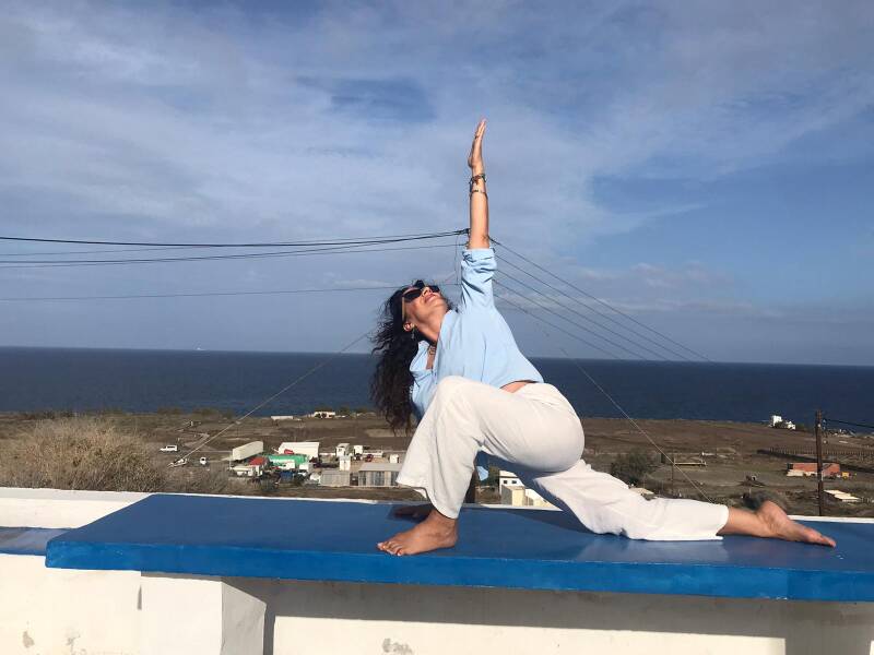 Elle a également perfectionné sa pratique en Inde, explorant le yoga vinyasa, le hatha, la méditation et les mantras.